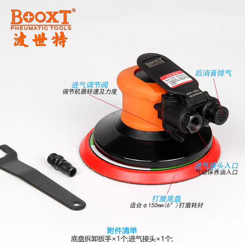 東莞強勁五金工具有限公司提供臺灣BOOXT波世特氣動工具,6寸氣動沙紙打磨機BX-203,廠家直銷,首件享特價。咨詢熱線:4008301980